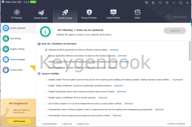 Many programs that run at startup silently consume resources in the background. Wise Care 365 speeds up system startup by disabling unnecessary programs.